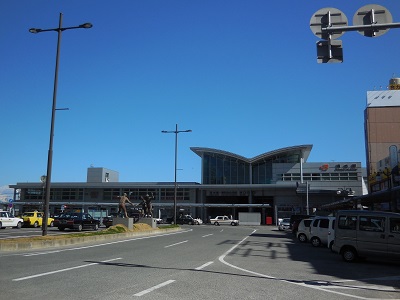 清水駅西口の「江尻口」を出ると、ロータリーの真ん中あたりにサッカーをしている子供たちの銅像山田収さん作の「瞬間」があります。サッカーの町という印象を受けます。