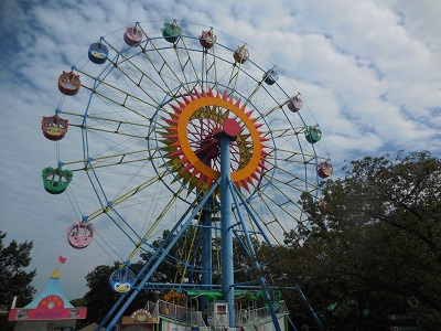お目当ての大観覧車は。正門をくぐってすぐの北園にある遊園地を目指す。