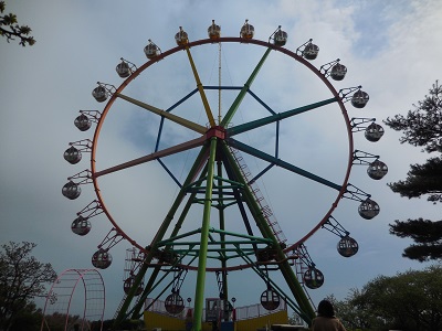 ご利用料金は400円です。「銀河鉄道」というミニSL(営業停止中)の踏切を渡ると大観覧車の乗り場になります。