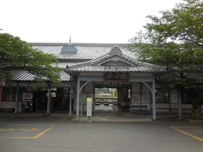 「養老駅」の駅舎には、たくさんのひょうたんが飾られています。
